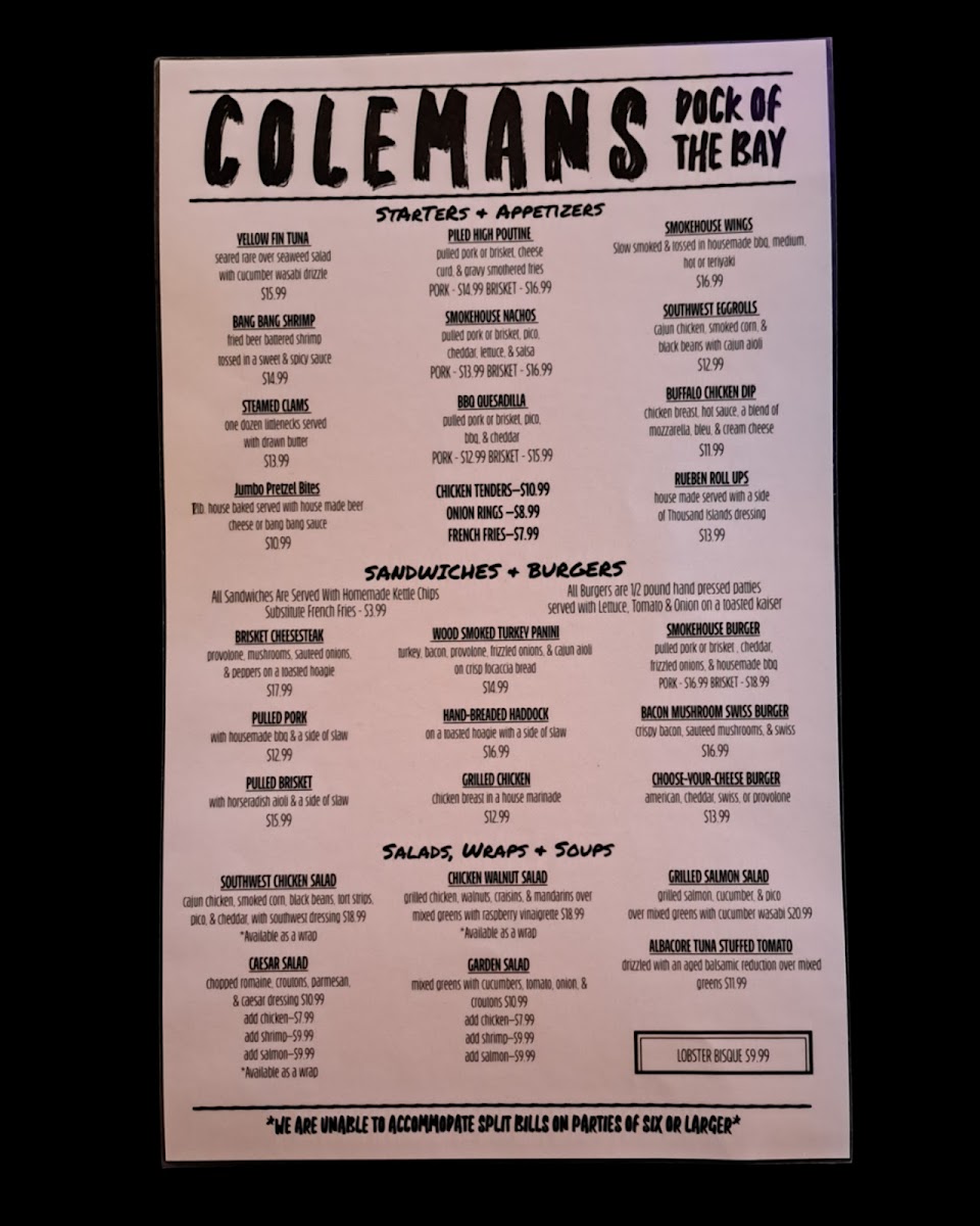 Welcome to Coleman's Dock Of The Bay, a delightful dining destination situated in the heart of Alexandria Bay, NY. This eatery presents a diverse menu that highlights the best of coastal cuisine, making it a haven for seafood lovers and comfort food enthusiasts alike.