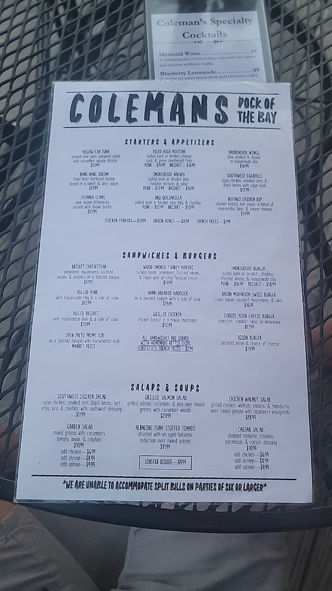 The barbecue selections, including perfectly cooked ribs and brisket, receive rave reviews. Diners can enjoy their meals al fresco, taking in picturesque views of the marina. With an inviting atmosphere and a variety of delectable dishes, Coleman's Dock Of The Bay promises a satisfying culinary experience for everyone.